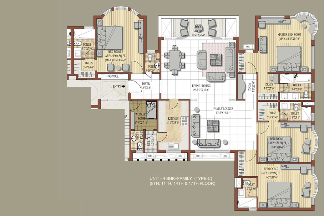 Unit Plans-Ground Floor-2BHK+Family 4th, 6th, 7th, 10th, 12th, 15th&18th Floor-3BHK+Family(Type A) Fifth Floor-3BHK+Family(Type D) 8th, 11th, 14th & 17th Floor-3BHK+Family (Type C) 9th, 13th & 16th Floor-3BHK+Family (Type B) 4th, 6th, 7th, 10th, 12th, 15th & 18th Floor-4BHK+Family (Type A) Fifth Floor-4BHK+Family (Type D) TOWER-T1,T4,T5 & T8 (3BHK + 4BHK)-Ground Floor 3BHK+Family & Entrance Lobby First Floor 3BHK+Family & 4BHK+Family Second Floor 3BHK+Family & 4BHK+Family Third Floor 3BHK+Family & 4BHK+Family 4th, 6th, 7th, 10th, 12th,15th & 18th Floor 4BHK+Family (Type A) & 3BHK+Family (Type A) 8th, 11th, 14th & 17th Floor-4BHK+Family (Type C) 9th, 13th & 16th Floor-4BHK+Family (Type B) Lower Pent House-4BHK+Family Upper Pent House-4BHK+Family Lower Pent House-5BHK+Family Lower Pent House-5BHK+Family Fifth Floor 4BHK+Family (Type D) & 3BHK+Family (Type D) 8th, 11th, 14th & 17th Floor 4BHK+Family (Type C) & 3BHK+Family (Type C) 9th, 13th & 16th Floor 4BHK+Family (Type B) & 3BHK+Family (Type B) TOWER-T2,T3, T6 & T7 (3BHK+3BHK)-Ground Floor 3BHK+Family & Entrance Lobby Ground Floor 3BHK+Family & Entrance Lobby Second Floor 3 BHK+Family( 2 NOS.) Third Floor 3 BHK+Family( 2 NOS.) 4th, 6th, 7th, 10th,12th, 15th & 18th Floor Fifth Floor 3 BHK+Family( Type D) 8th, 11th, 14th & 17th Floor 3 BHK+Family( Type C) 9th, 12th & 16th Floor 3 BHK+Family( Type B)
